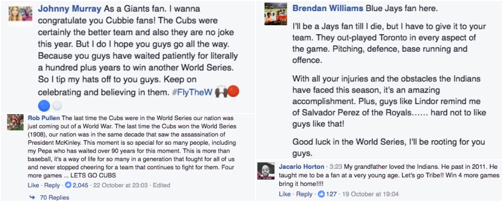 Much of the teams’ success on social comes from their fans’ genuine enthusiasm. Both the Cubs and the Indians have a story to tell at this year’s World Series. Whether the content comes from a publisher, agency, or brand, storytelling is key for social media engagement.