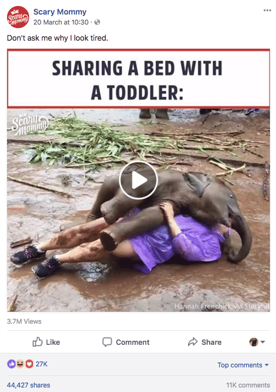 Light-hearted, funny posts can stand out in the news feeds and give users some much-needed comedy. Scary Mommy is a publisher that’s built up a strong community around finding the humorous and relatable moments in parenting.