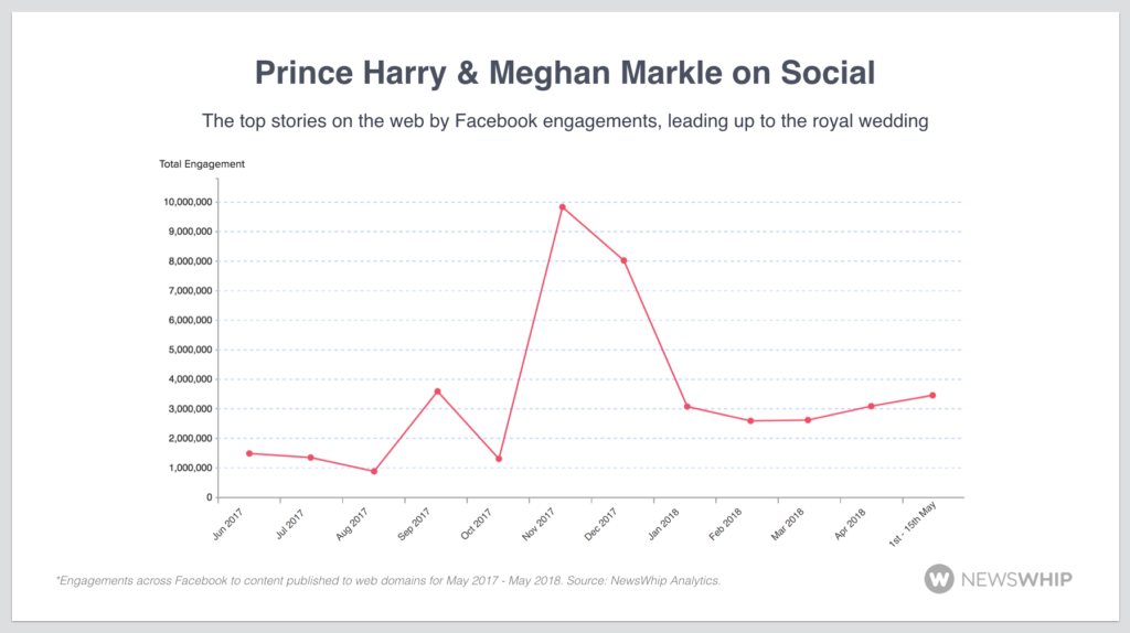 Looking at NewsWhip Analytics, we noticed that across different platforms, there are very different patterns in how users are engaging ahead of Prince Harry and Meghan Markle’s wedding.