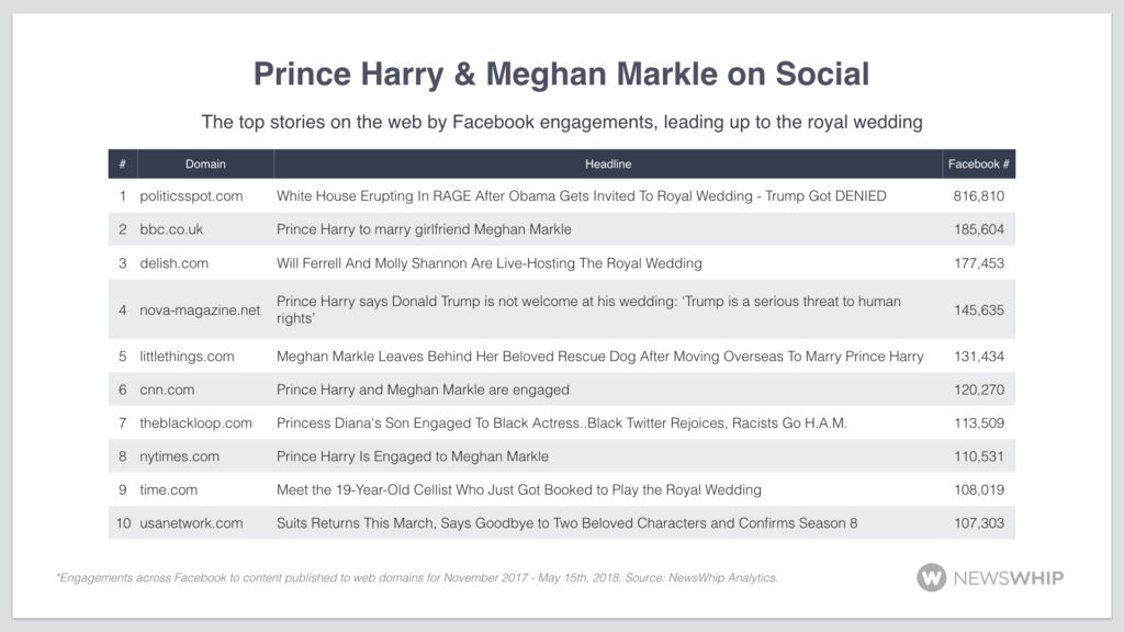 With Meghan Markle and Prince Harry’s royal wedding buzzing on social, we take a look at which stories are royally share-worthy.Â