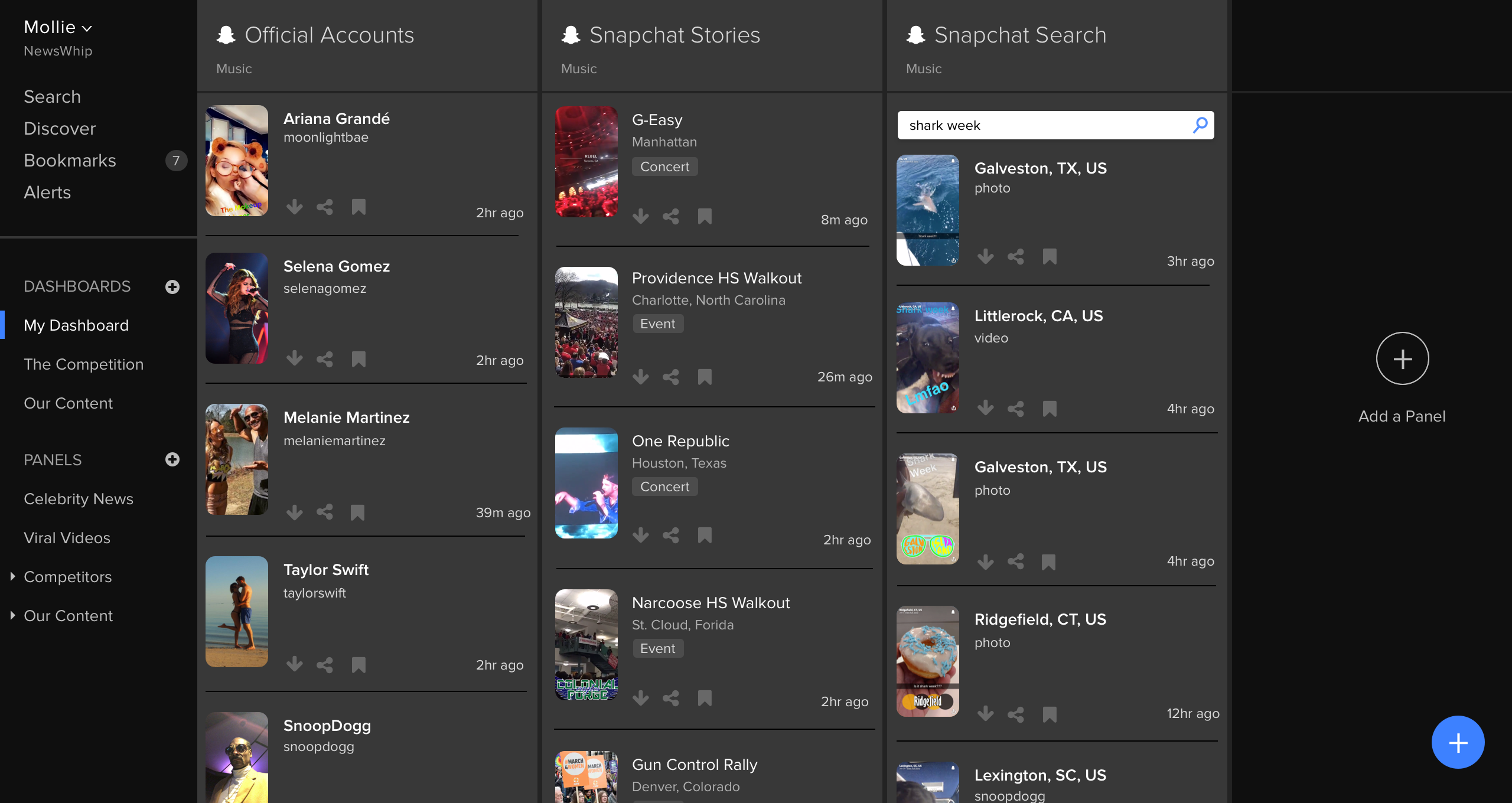 Snapchat Stories: Real-time tracking of the top Snapchat Stories, from breaking incidents to concerts and sporting events, from around the world.