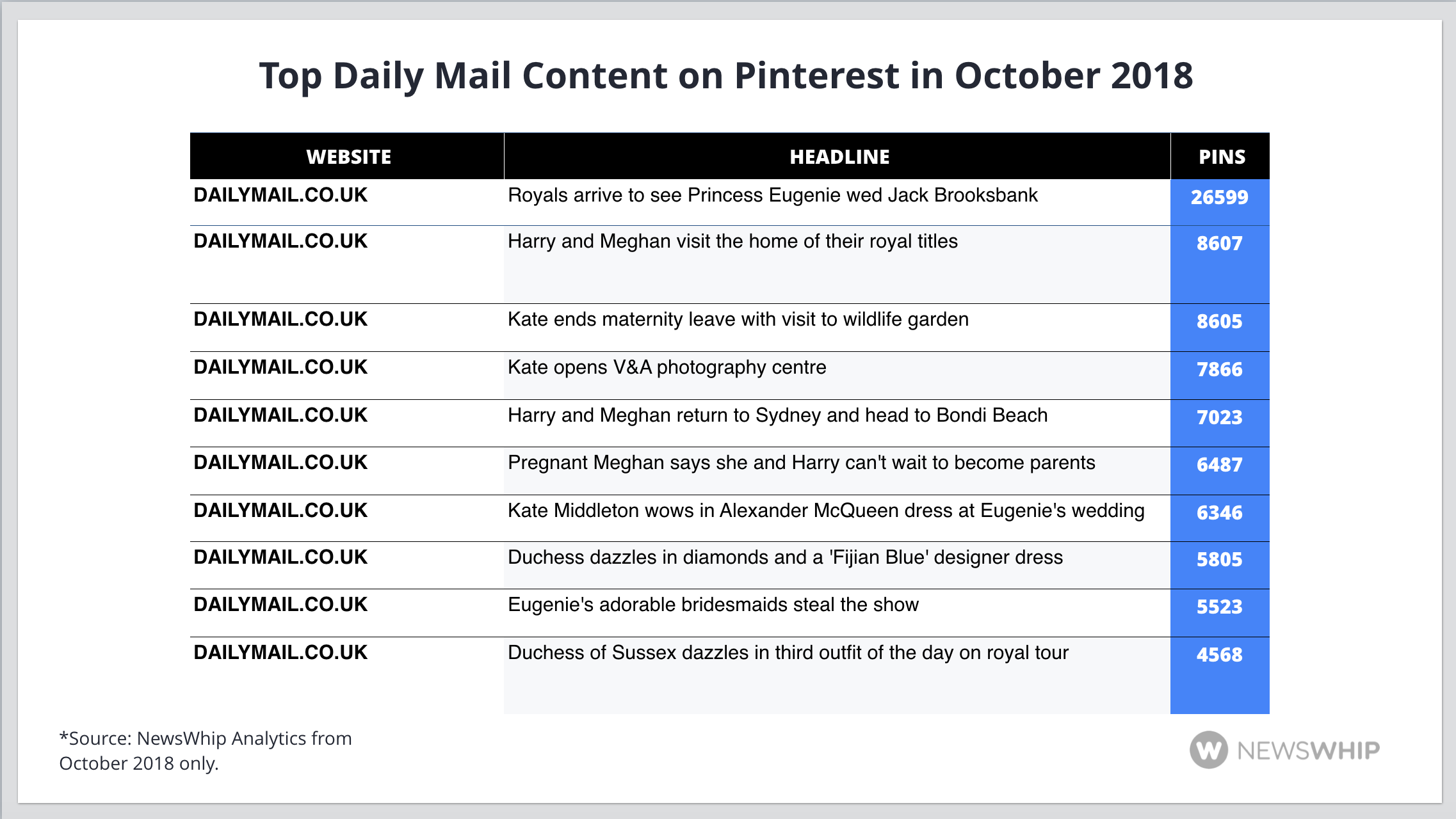 Daily Mail is a dominant force on Pinterest, through its royals coverage