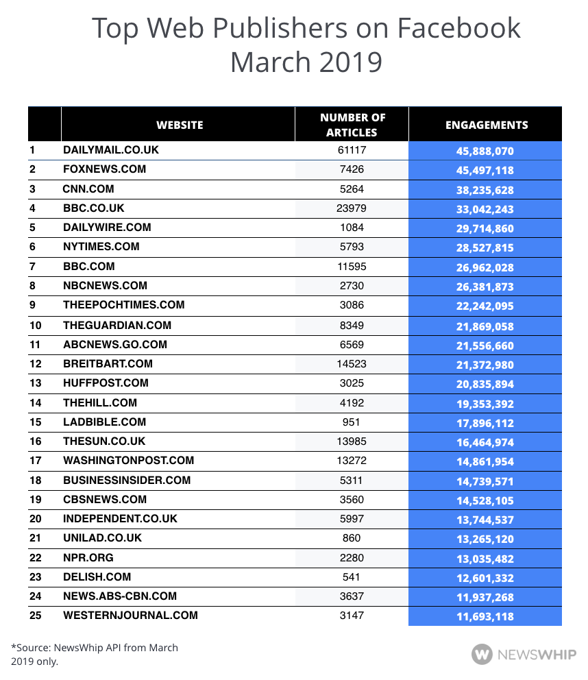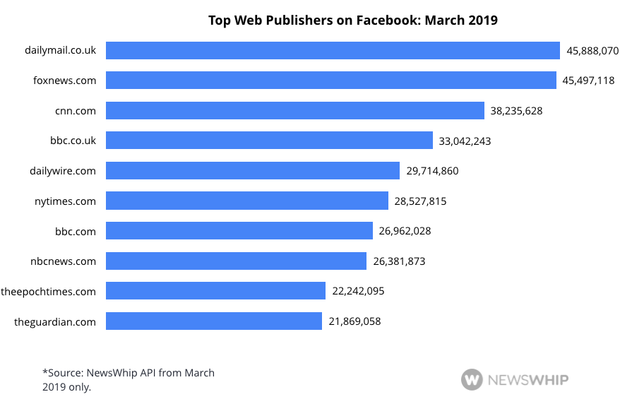 The top web publishers on Facebook in March 2019