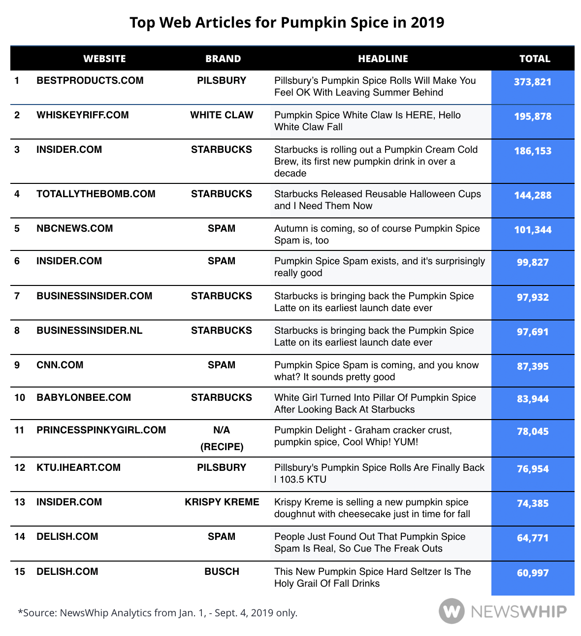 The most widely circulated story though came from bestproducts.com and featured those Pilsbury pumpkin spice rolls that were talked about everywhere on the internet as soon as Sept. 1 hit.