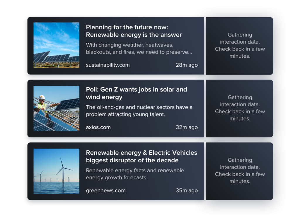 When a story is discovered, it may not have a lot of public interaction data yet. We didn’t make it clear that this was because the story had only just been published. In this case, we have added more information on article cards to make it clear that we are still gathering data, but that public interaction data will be available shortly.
