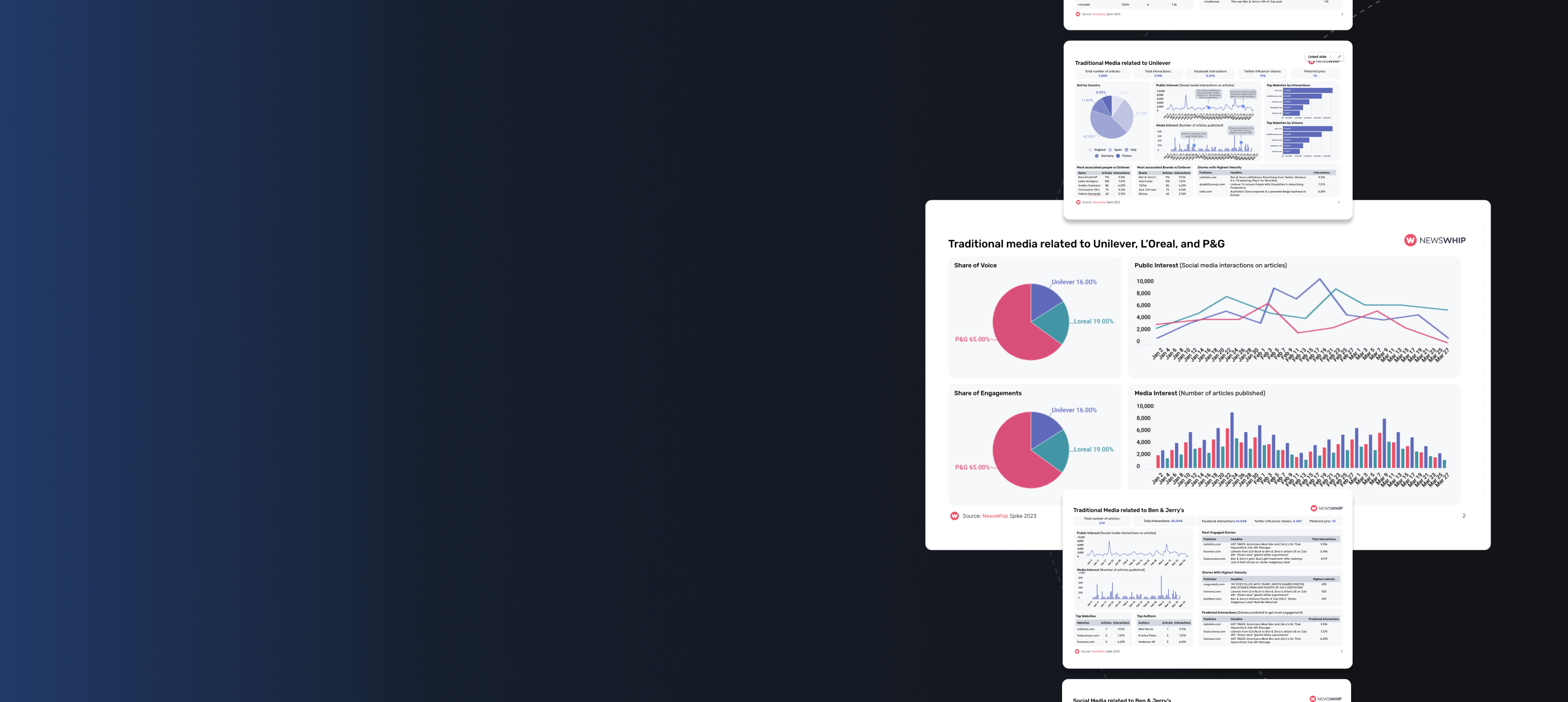 To make sure we’re delivering insights you can act on, we’re introducing custom reports, summaries, and deep dives in the formats and frequencies suited to your needs. These will be curated by experts and powered by the same great NewsWhip data you’ve come to expect.