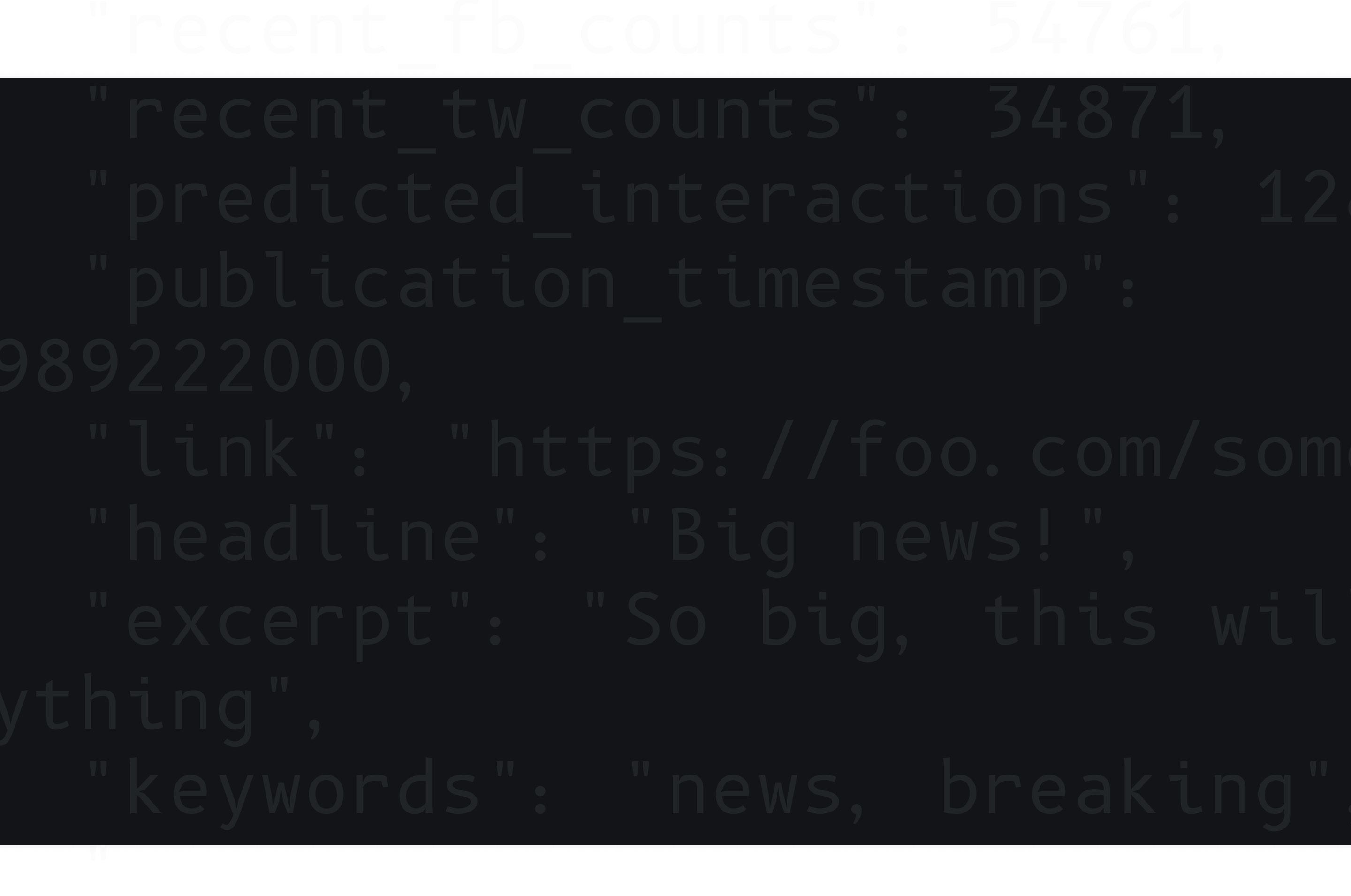Once content is discovered, NewsWhip measures public engagement with web articles on Facebook & Twitter and makes it available through multiple API endpoints.