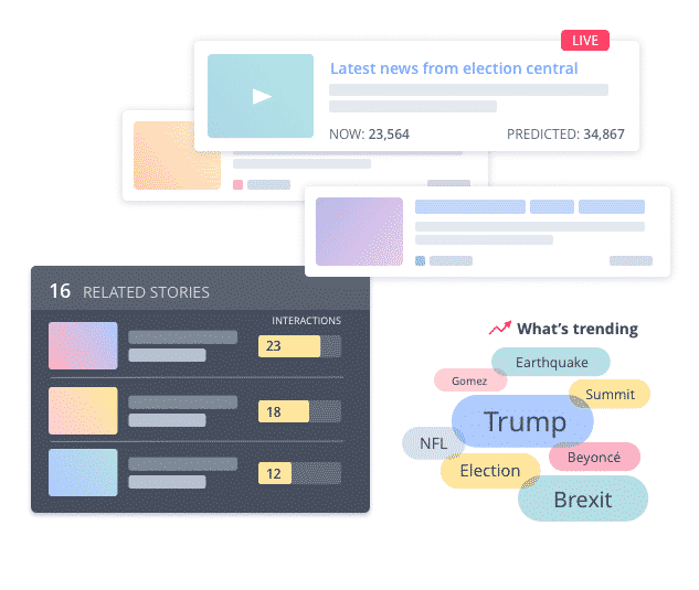 A real-time view of the sites, stories and posts engaging audiences. Discover breaking content faster and predict performance.