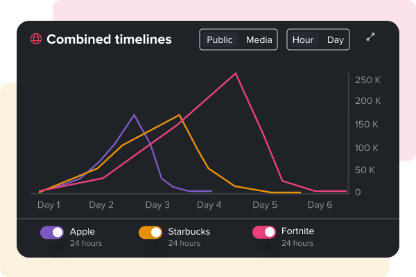 NewsWhip Spike offers the world’s fastest content discovery, delivering up-to-the-minute engagement data for newly published articles. NewsWhip’s extensive platform coverage, including TikTok, Instagram, X, and YouTube. These networks, combined with our unmatched Facebook engagement data and full Reddit firehose, mean we’ll always have you covered, no matter where the conversation is happening.