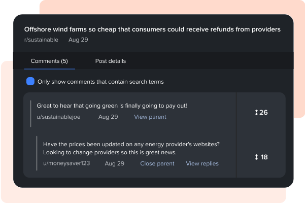 Monitor your keywords across 130,000 communities. Understand public perception, and put context on the early signals from honest community discussion among Redditors.